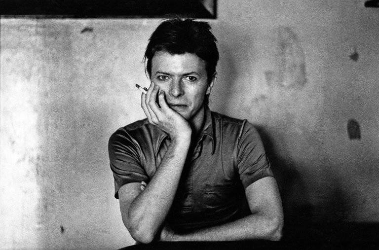 David Bowie: De sfeer die ik voel als ik naar deze foto kijk is rust en kalmte, en serieus door dat hij zijn kin op zijn hand legt. Maar ook vind ik de foto uitdagend omdat hij toch een klein beetje glimlacht/ grijnst en hierdoor ook een beetje speels.